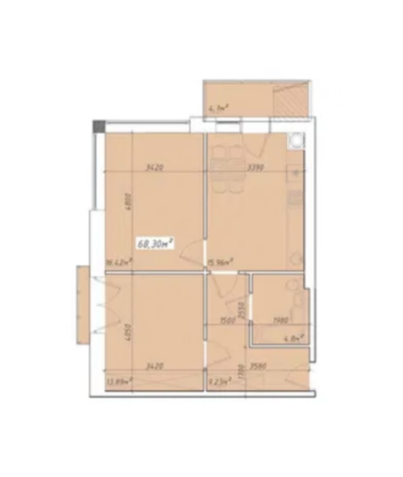 - Площа нерухомості 68,3 m²